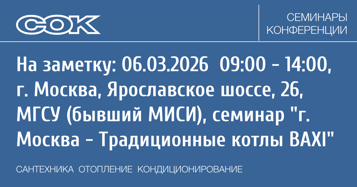 - 12.02.2026 09:00 - 17:00 Семинар Технический семинар по котлам Baxi в Дмитрове