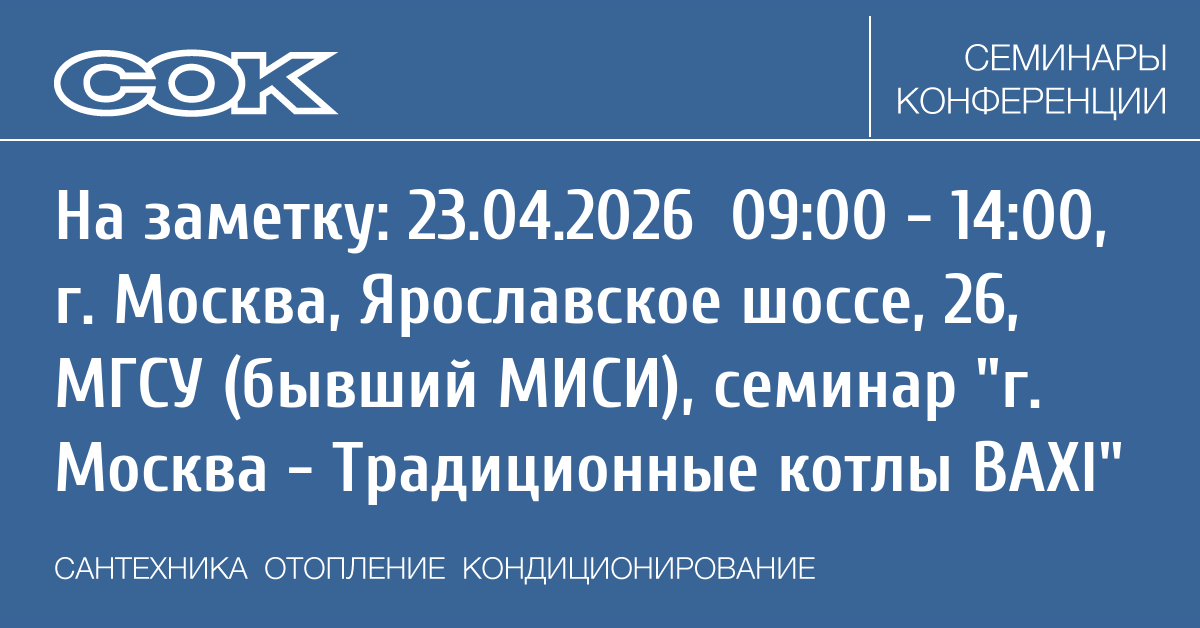 Компания «БДР Термия Рус» проводит технические семинары по продукции BAXI в МГСУ.