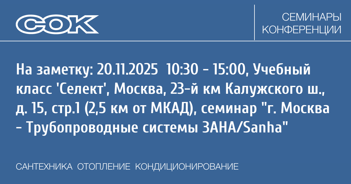 Seminar: г. Москва - Трубопроводные системы ЗАНА/Sanha