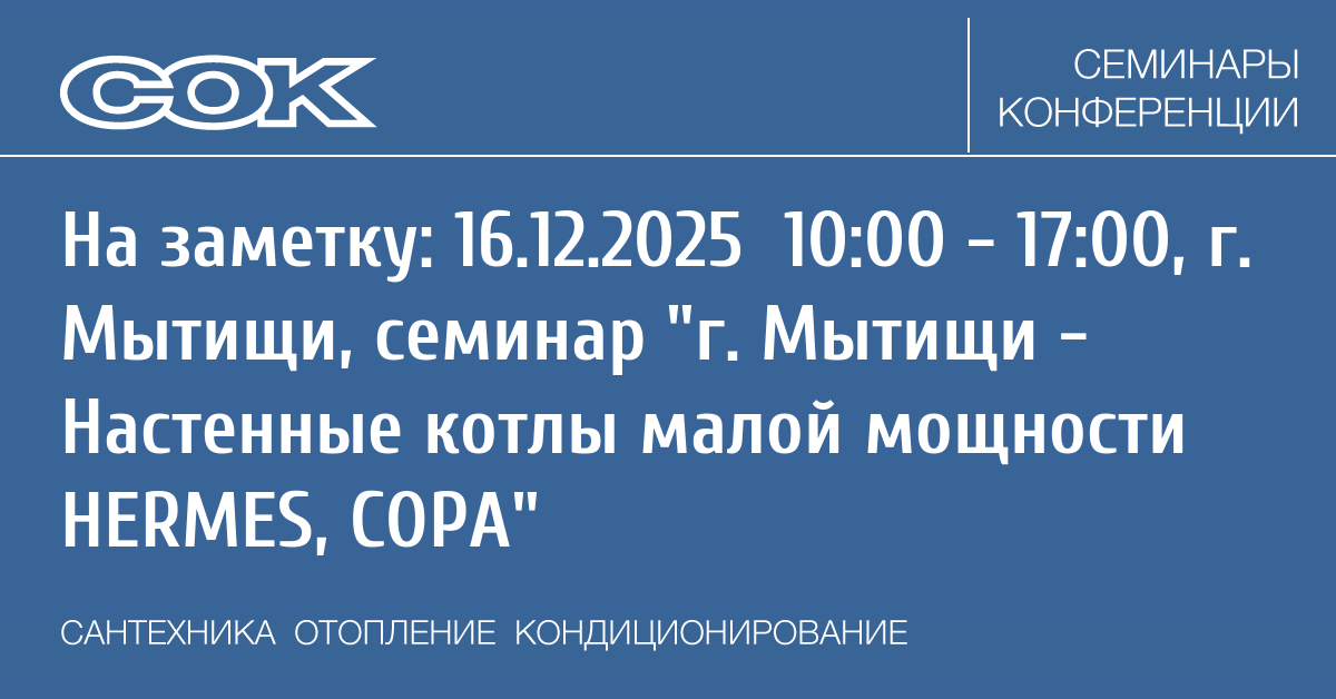 Семинар: г. Мытищи - Настенные котлы малой мощности HERMES, COPA