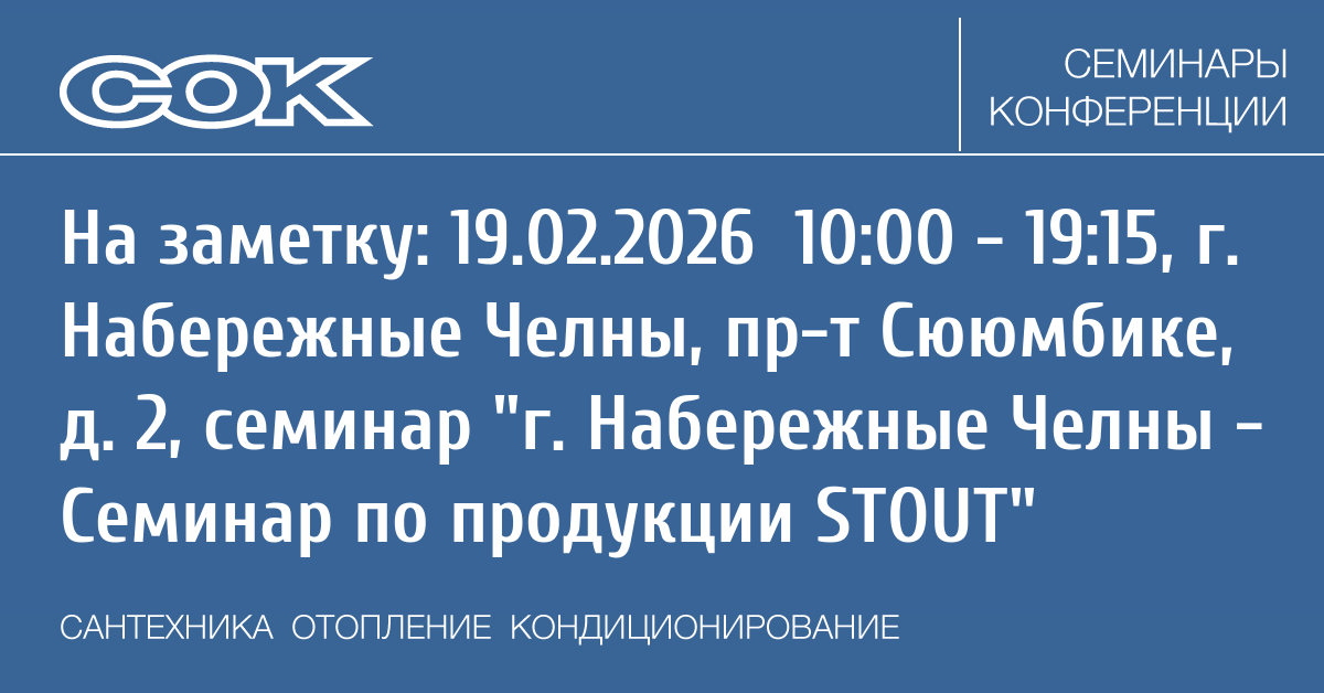 - 10:30–13:15 — Ассортимент продукции. Stout для систем отопления и водоснабжения (1 часть).
