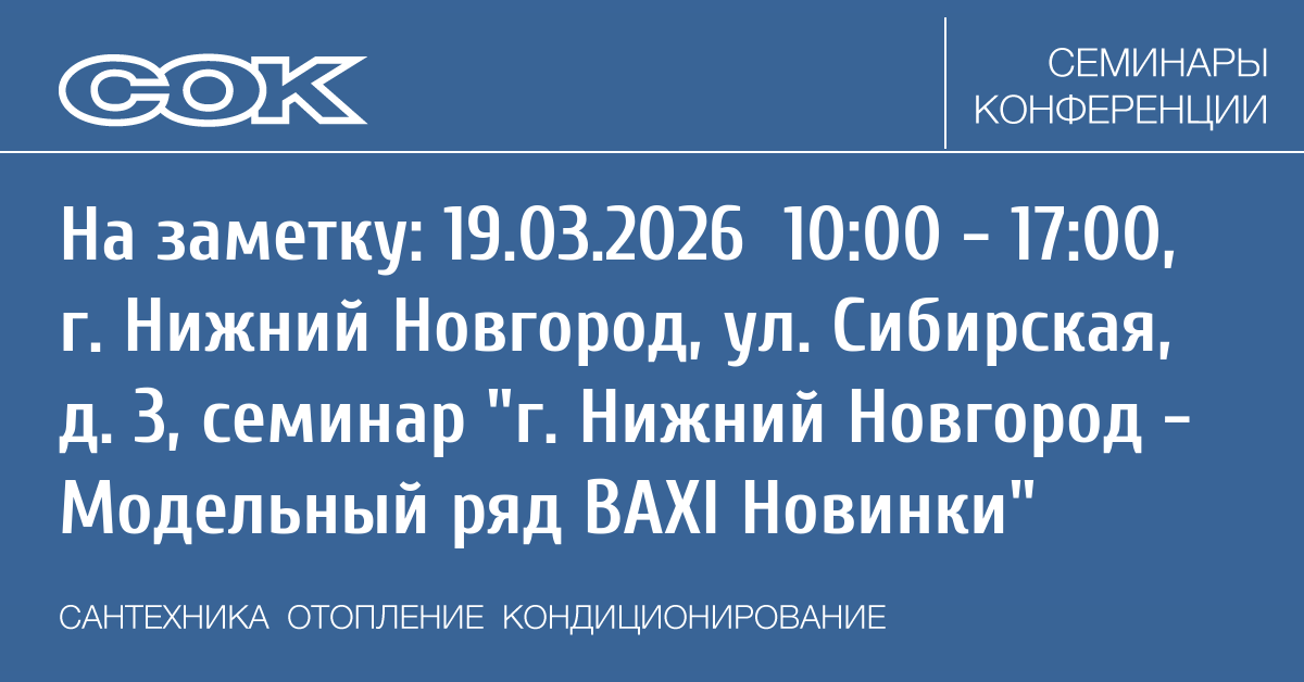 - 05.03.2026 10:00 - 15:00 Семинар г. Тамбов - Котельное оборудование BAXI и De Dietrich