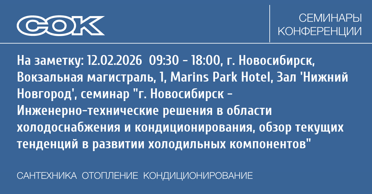 Семинар: г. Новосибирск - Инженерно-технические решения в области холодоснабжения и кондиционирования, обзор текущих тенденций в развитии холодильных компонентов