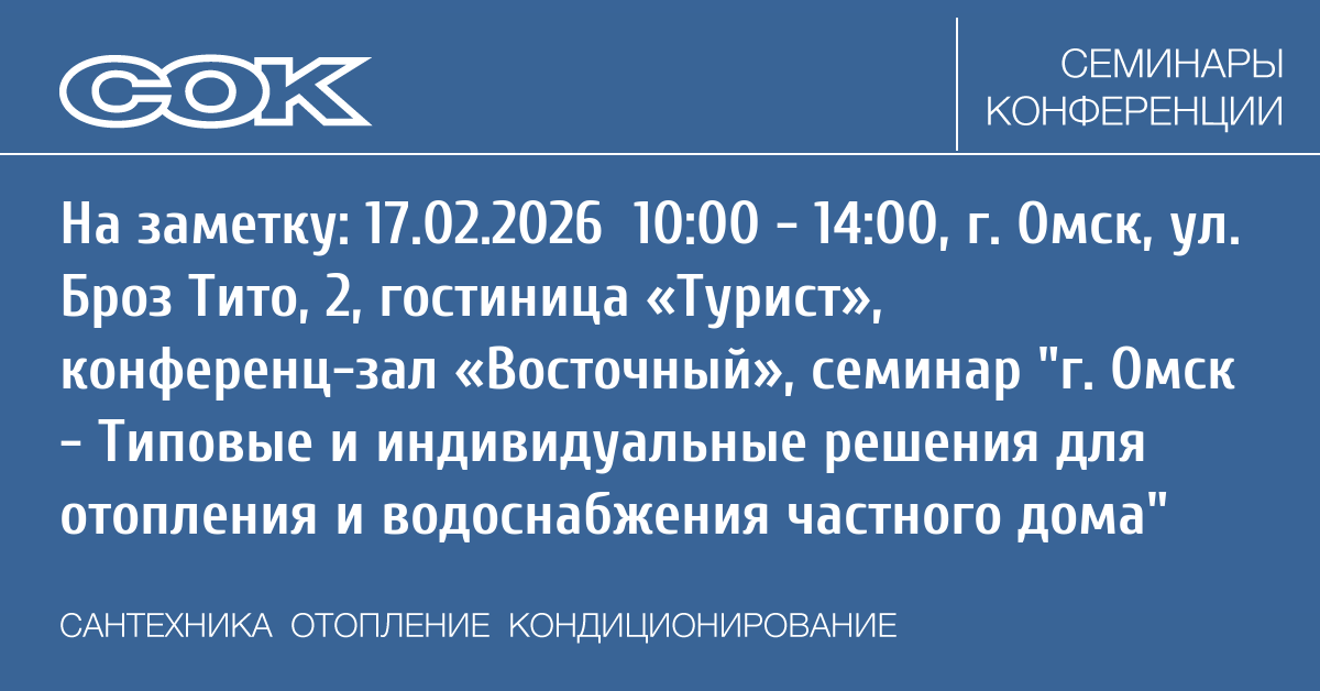 Семинар: г. Омск - Типовые и индивидуальные решения для отопления и водоснабжения частного дома