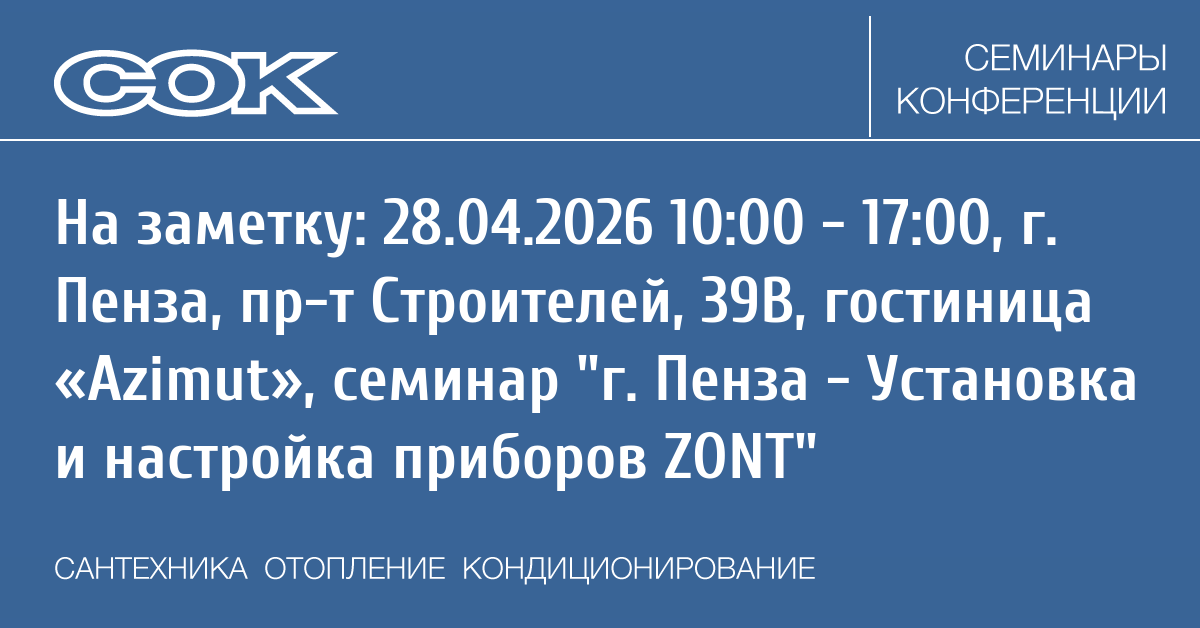 Семинар: г. Пенза - Установка и настройка приборов ZONT