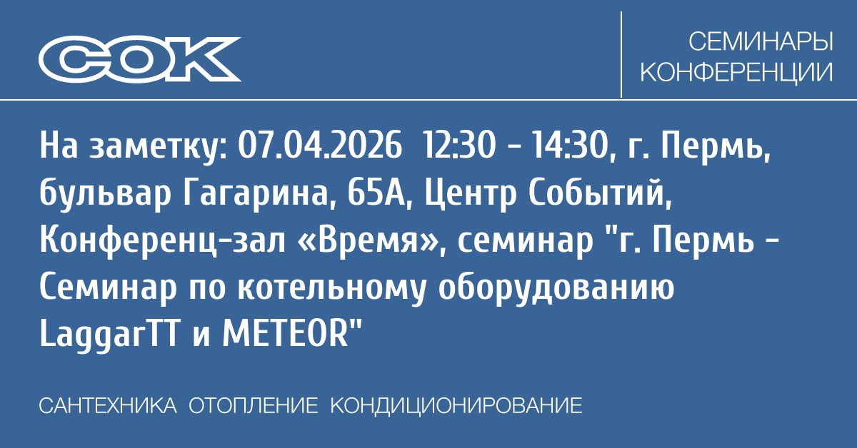 Семинар: г. Пермь - Семинар по котельному оборудованию LaggarTT и METEOR