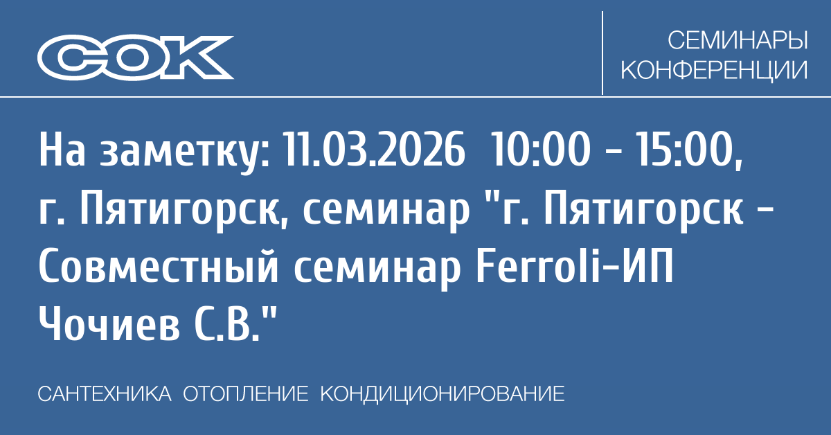 Семинар: г. Пятигорск - Совместный семинар Ferroli-ИП Чочиев С.В.