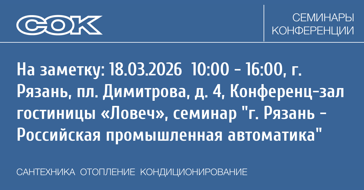 18 марта 2026 года компания ОВЕН совместно с дилером ООО «КИП и Автоматика» проведет в Рязани семинар «Российская промышленная автоматика».