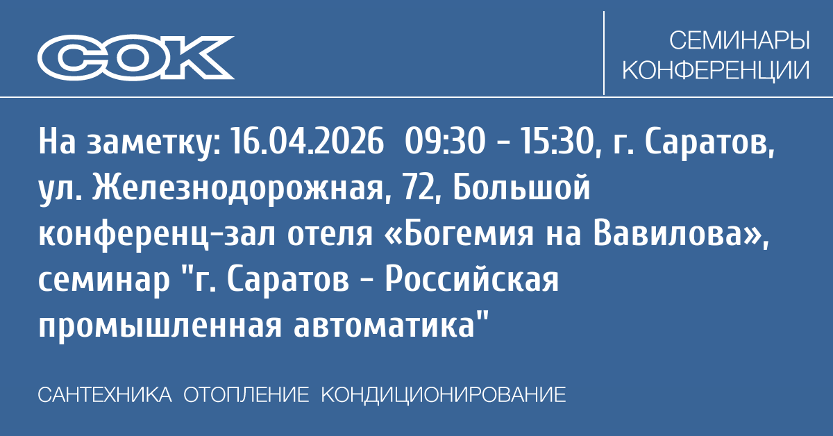 16 апреля 2026 года компания ОВЕН совместно с дилером КИПАСО проведет в Саратове семинар »Российская промышленная автоматика».