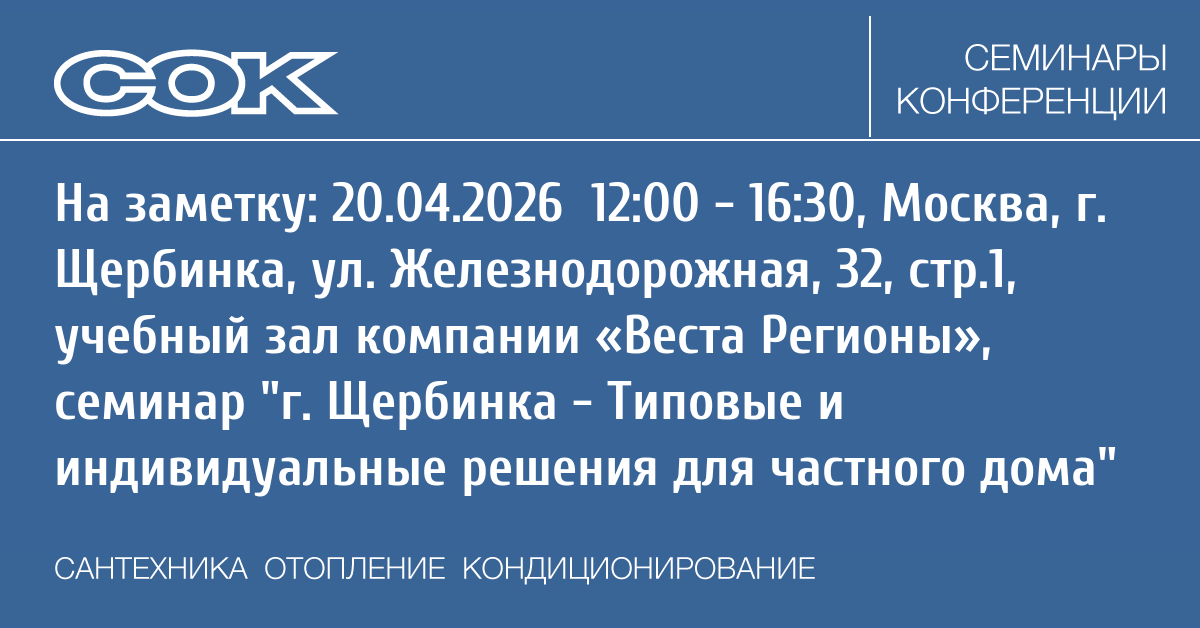 - 25.03.2026 09:30 - 18:00 Семинар г. Владивосток - Инженерно-технические решения в области холодоснабжения и кондиционирования, обзор текущих тенденций в развитии холодильных компонентов