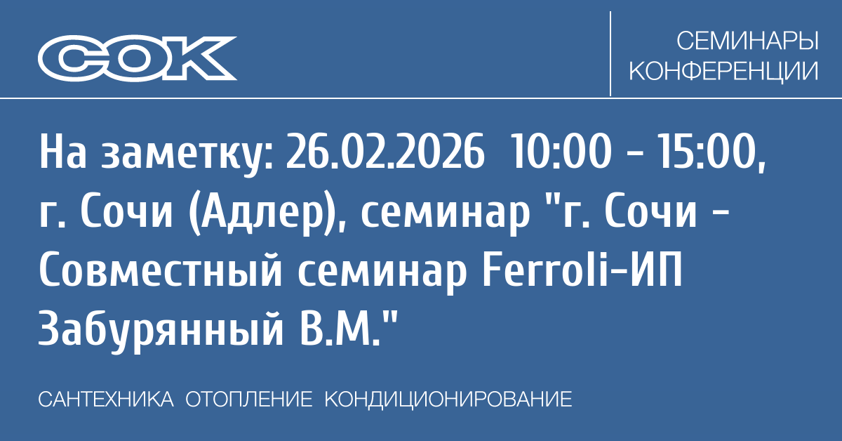 Семинар: г. Сочи - Совместный семинар Ferroli-ИП Забурянный В.М.