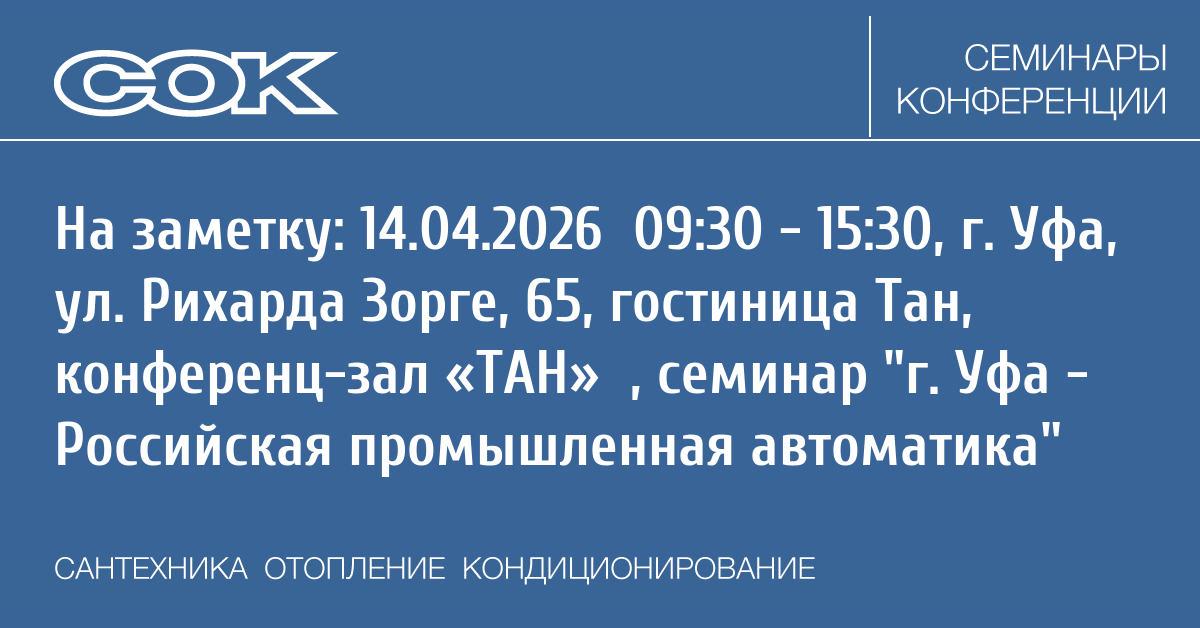 14 апреля 2026 года компания ОВЕН совместно с дилером Овен-Уфа проводит семинар в Уфе «Российская промышленная автоматика» для специалистов, отвечающих за автоматизацию технологических процессов — как на этапе внедрения, так и в ходе эксплуатации.