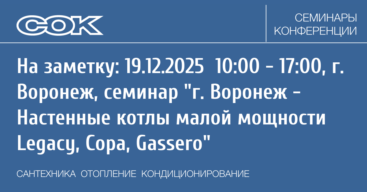 Семинар: г. Воронеж - Настенные котлы малой мощности Legacy, Copa, Gassero