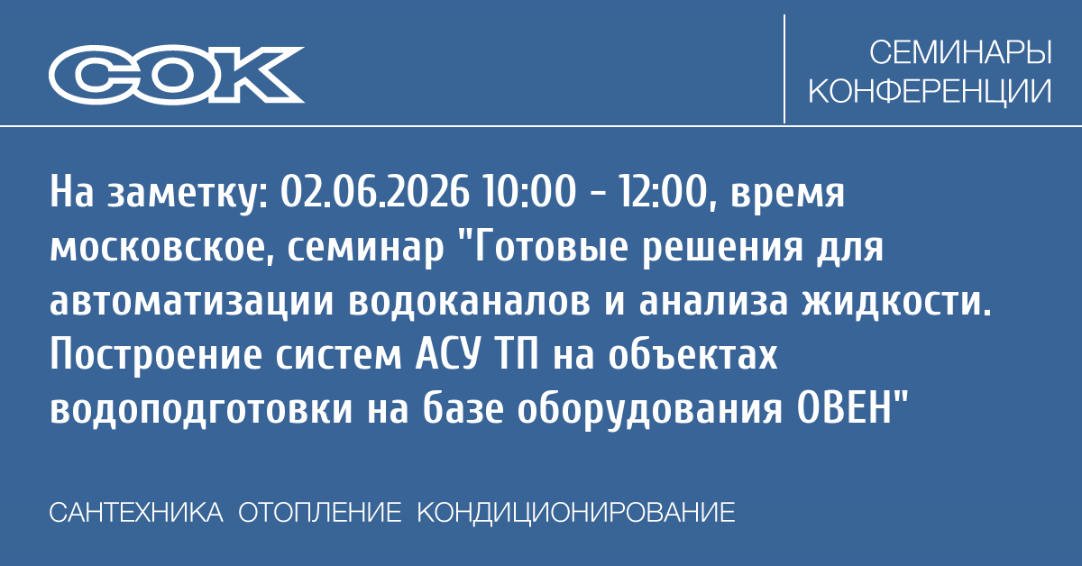 Вебинар: Готовые решения для автоматизации водоканалов и анализа жидкости. Построение систем АСУ ТП на объектах водоподготовки на базе оборудования ОВЕН
