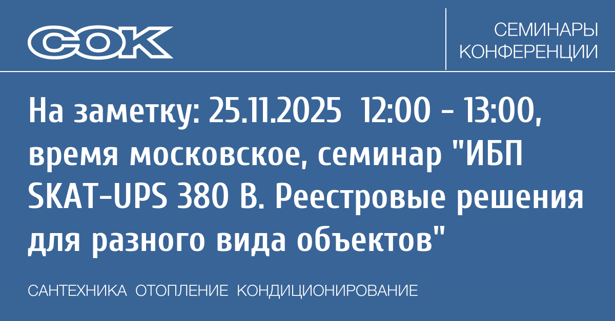 Вебинар: ИБП SKAT-UPS 380 В. Реестровые решения для разного вида объектов