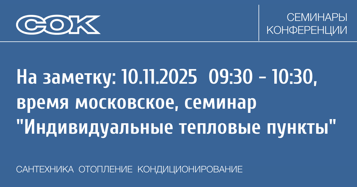 - 10.11.2025 09:30 - 10:30 Webinar Индивидуальные тепловые пункты