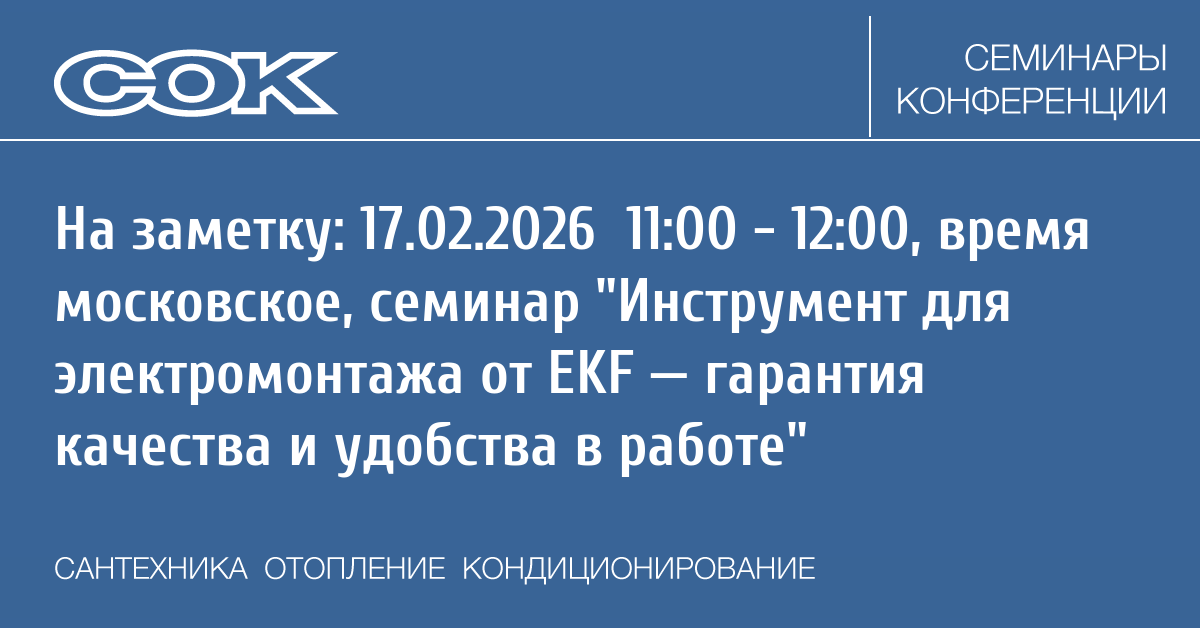 - 12.02.2026 09:30 - 18:00 Семинар г. Новосибирск - Инженерно-технические решения в области холодоснабжения и кондиционирования, обзор текущих тенденций в развитии холодильных компонентов