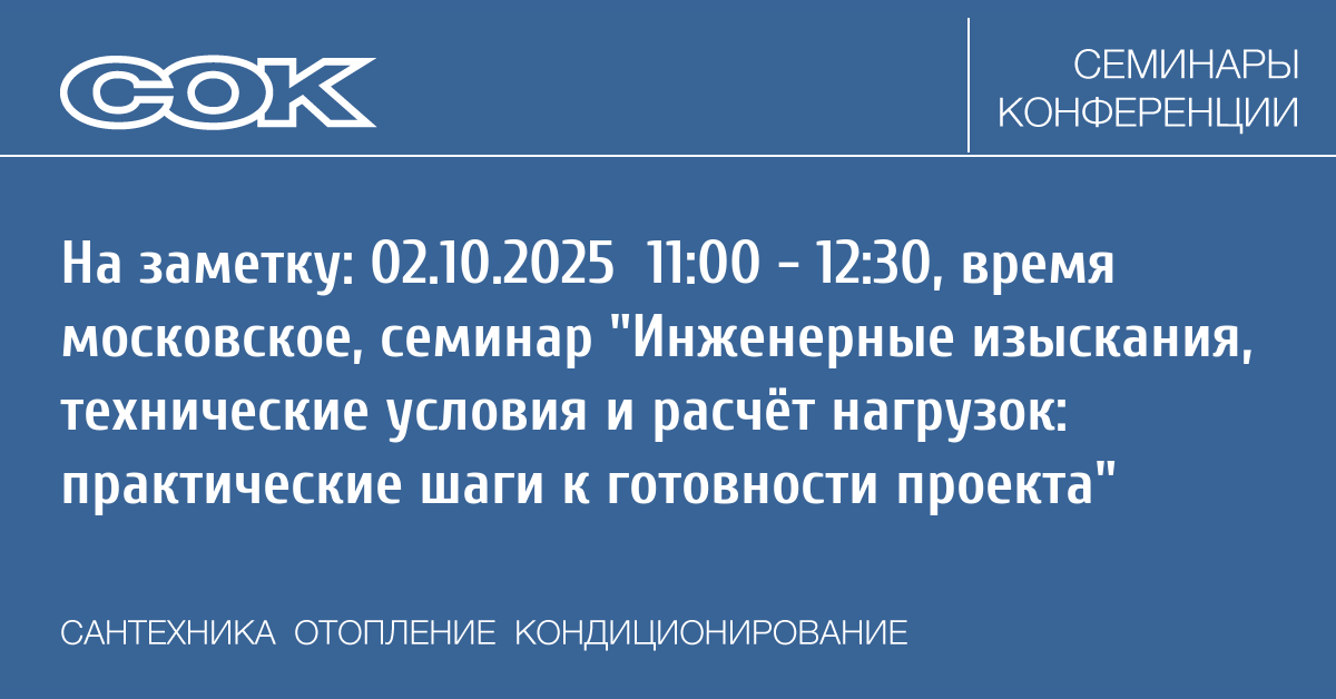 - 02.10.2025 11:00 - 12:30 Webinar Инженерные изыскания, технические условия и расчёт нагрузок: практические шаги к готовности проекта