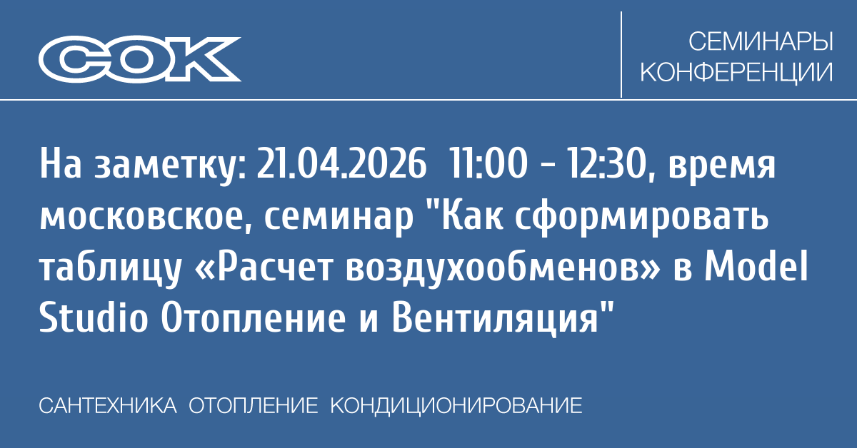 Вебинар: Как сформировать таблицу «Расчет воздухообменов» в Model Studio Отопление и Вентиляция