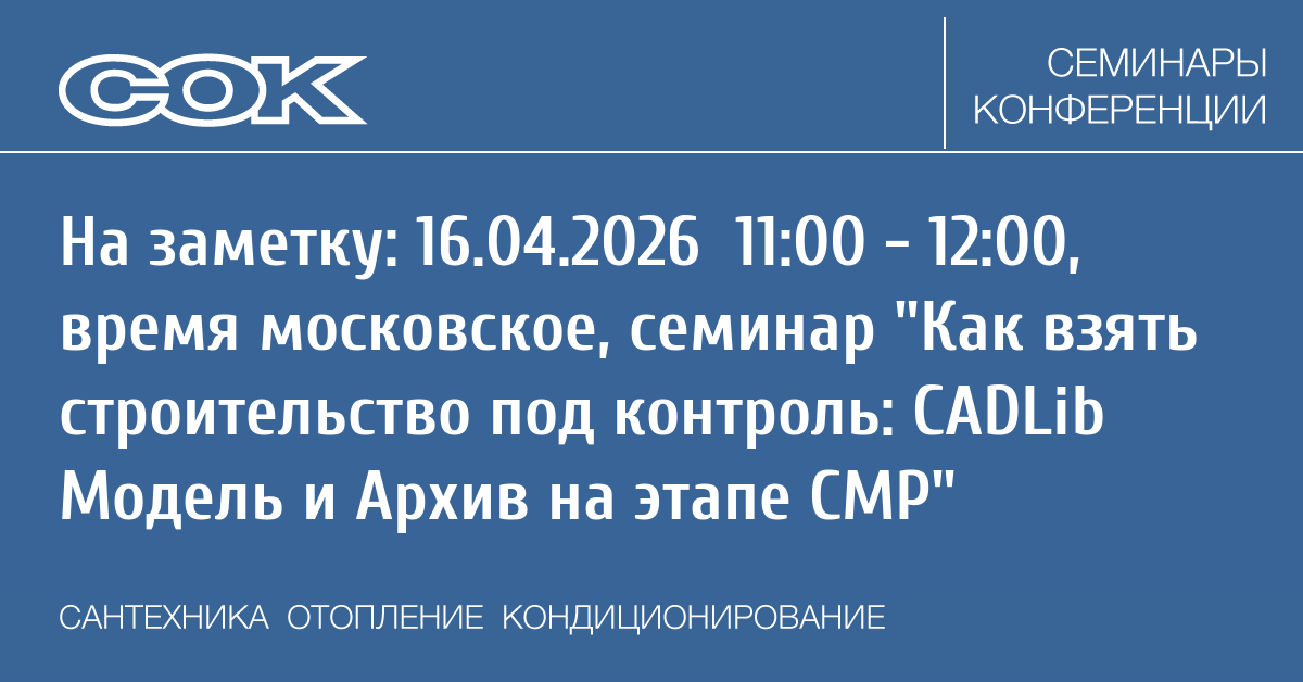 Учебный центр «Нормасофт» (партнер-эксперт АО «СиСофт Девелопмент») проводит вебинар «Как взять строительство под контроль: CADLib Модель и Архив на этапе СМР».