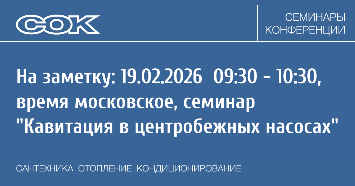 - 12.02.2026 09:30 - 10:30 Вебинар Регулирование производительности центробежных насосов