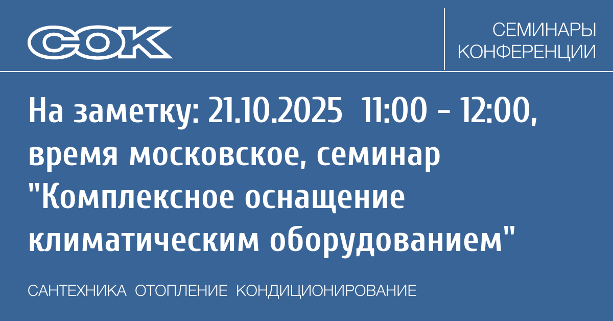 - 14.10.2025 09:30 - 10:30 Webinar Циркуляция ГВС в ИТП и котельных