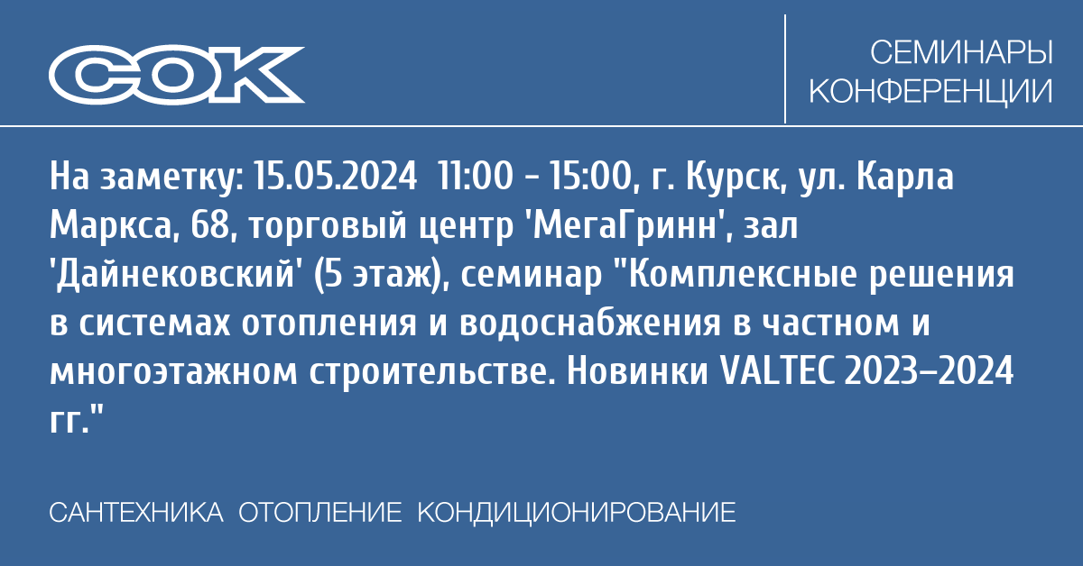 Семинар: Комплексные решения в системах отопления и водоснабжения в частном и многоэтажном строительстве. Новинки VALTEC 2023–2024 гг.