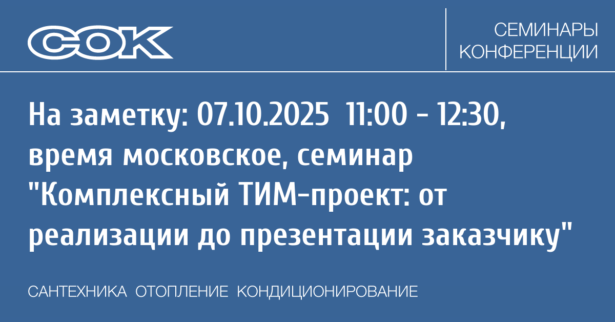 - 07.10.2025 11:00 - 12:30 Webinar Комплексный ТИМ-проект: от реализации до презентации заказчику