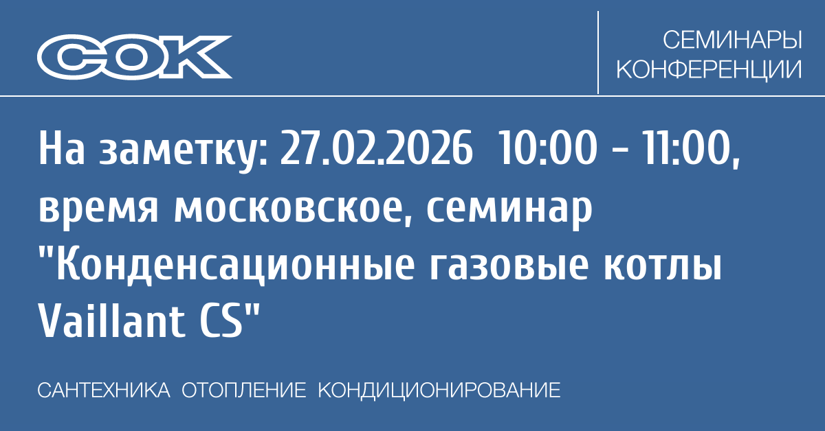 - 27.02.2026 10:00 - 11:00 Вебинар Конденсационные газовые котлы Vaillant CS
