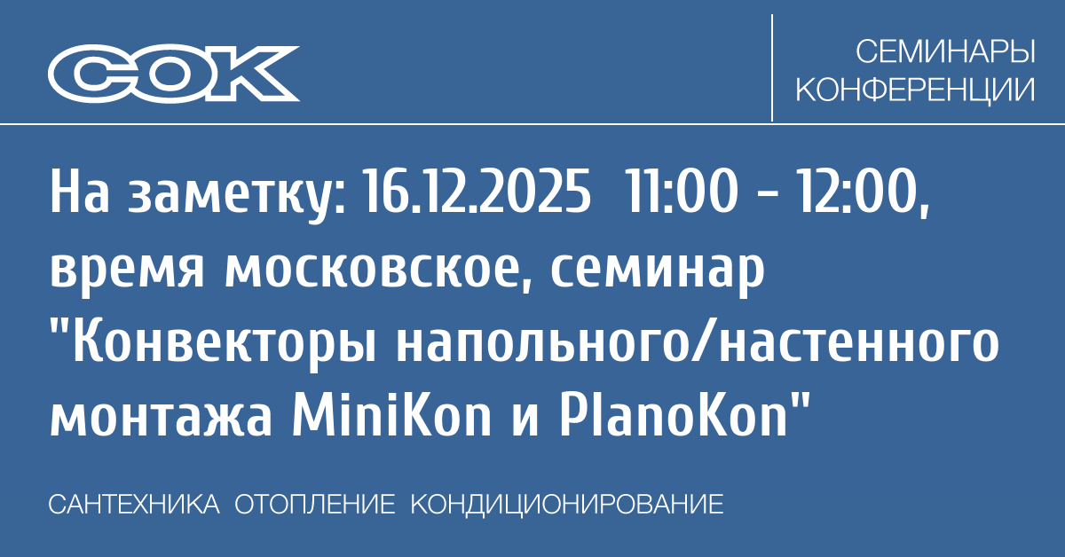 Вебинар: Конвекторы напольного/настенного монтажа MiniKon и PlanoKon