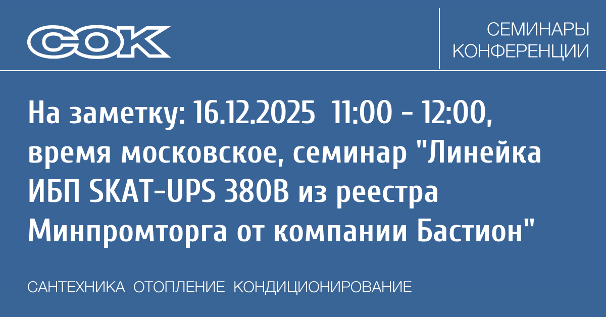 Вебинар: Линейка ИБП SKAT-UPS 380В из реестра Минпромторга от компании Бастион