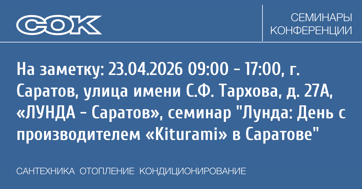 Семинар: Лунда: День с производителем «Kiturami» в Саратове