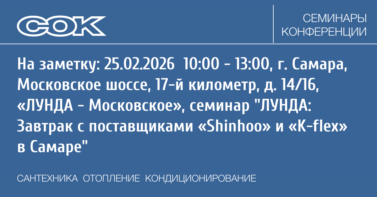 Семинар: ЛУНДА: Завтрак с поставщиками «Shinhoo» и «K-flex» в Самаре
