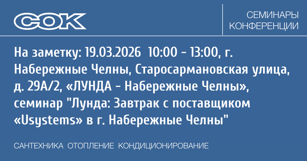 Компания Лунда совместно с поставщиком «Usystems» проводит мероприятие, которое пройдёт в филиале «ЛУНДА — Набережные Челны» 19 марта 2026 года.