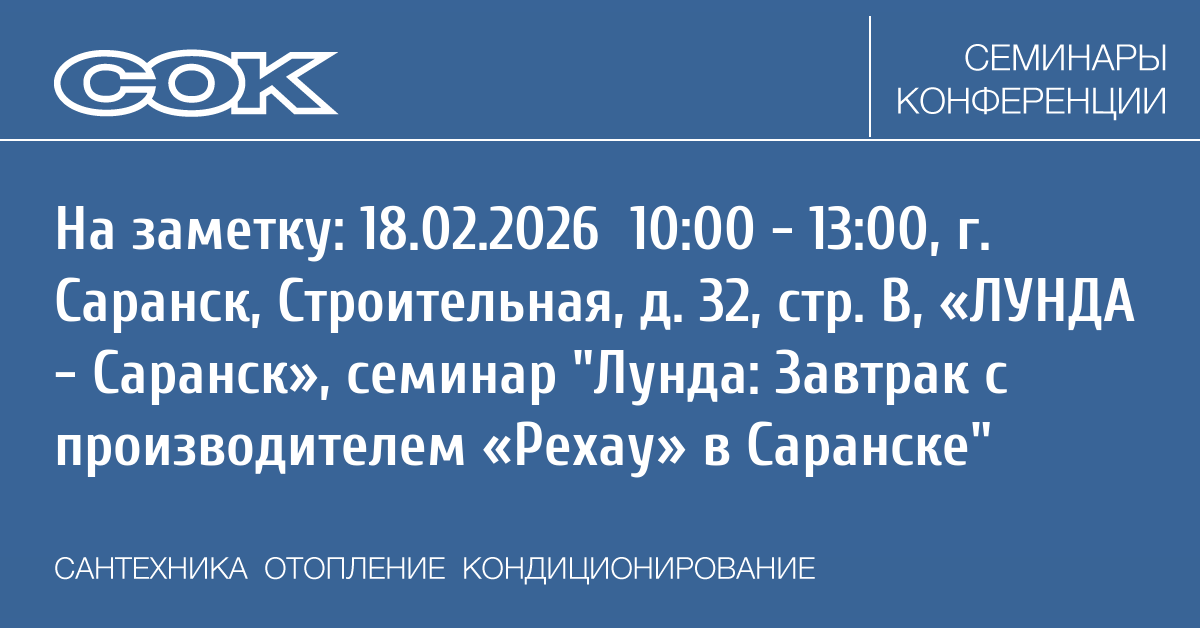 - 12.02.2026 09:00 - 12:00 Семинар Лунда: Завтрак с поставщиком «Рехау» в г. Нижний Новгород