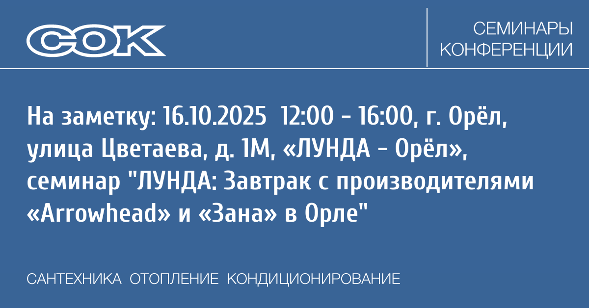 Seminar: ЛУНДА: Завтрак с производителями «Arrowhead» и «Зана» в Орле