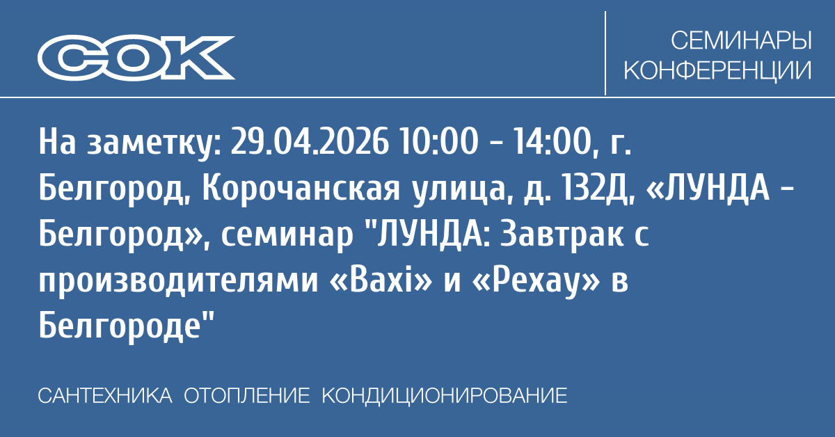 Семинар: ЛУНДА: Завтрак с производителями «Baxi» и «Рехау» в Белгороде