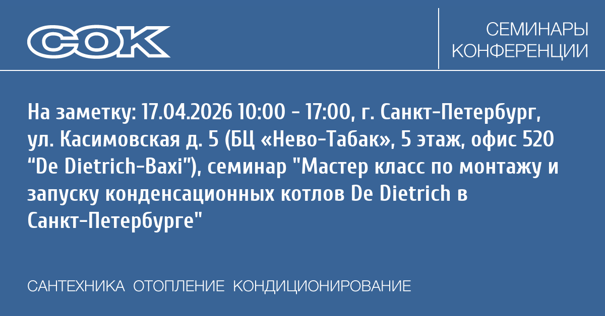 Семинар: Мастер класс по монтажу и запуску конденсационных котлов De Dietrich в Санкт-Петербурге