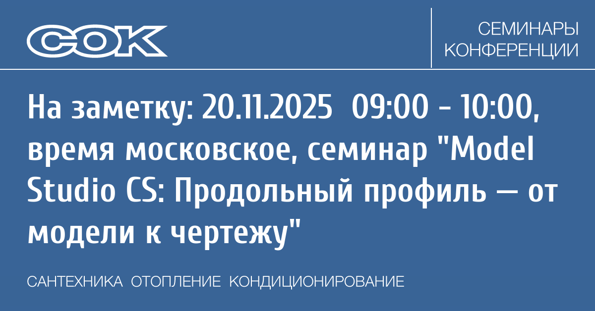 - 20.11.2025 09:00 - 10:00 Webinar Model Studio CS: Продольный профиль — от модели к чертежу