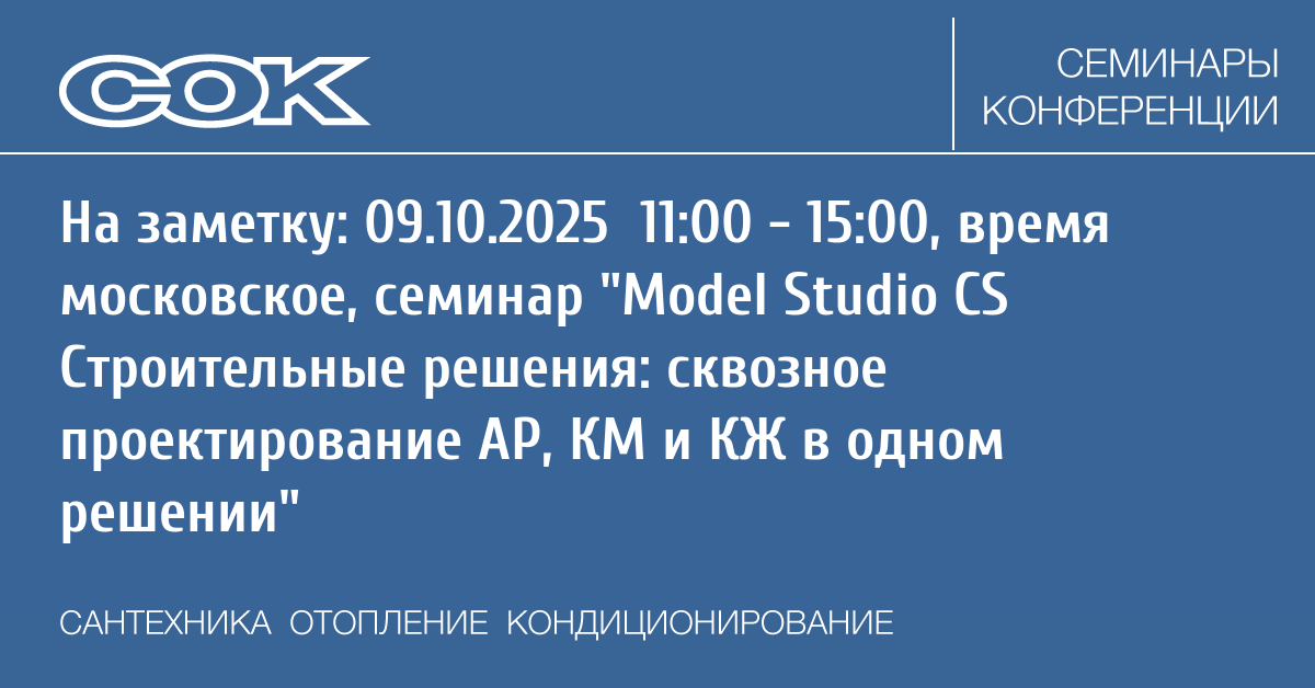 Компания «Нормасофт», партнер-эксперт и аккредитованный центр компетенций «СиСофт Девелопмент», 9 октября 2025 г. проводит бесплатный онлайн мастер-класс по работе с программным продуктом Model Studio CS Строительные решения — «Model Studio CS Строительные решения: сквозное проектирование АР, КМ и КЖ в одном решении».