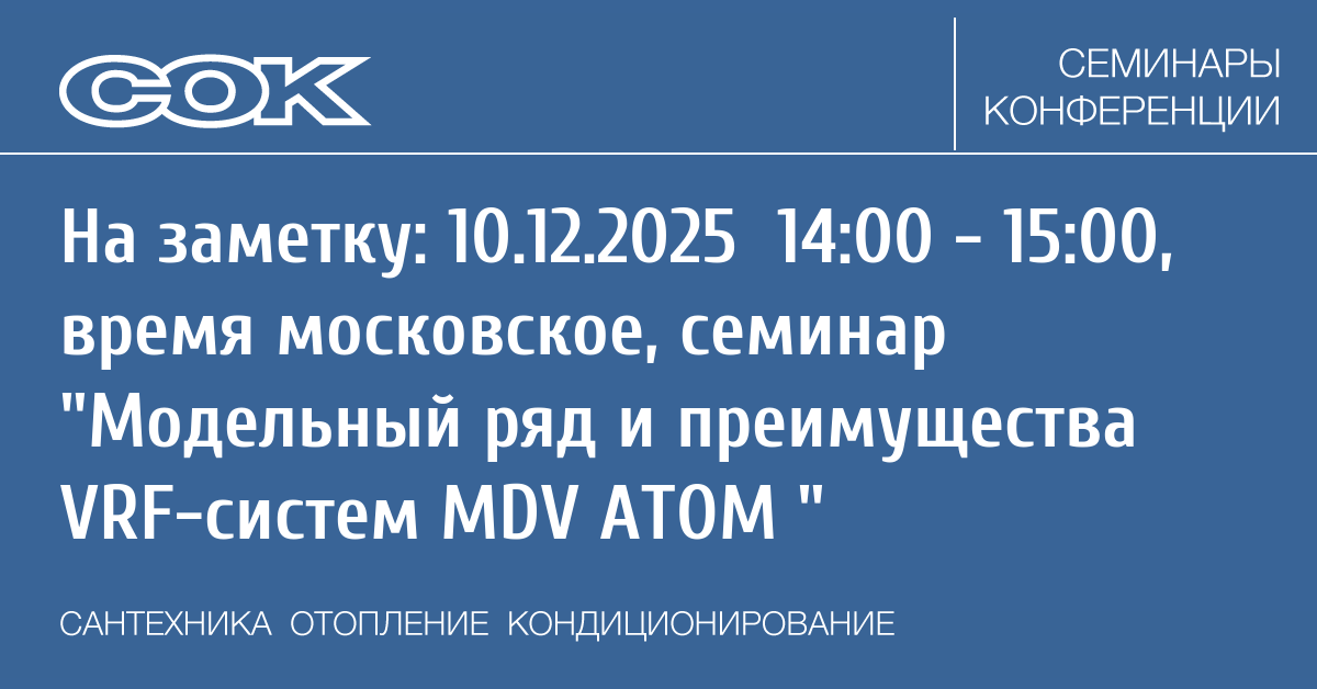 - 13.03.2026 10:30 - 16:30 Семинар г. Минск - Инженерно-технические решения в области холодоснабжения ?и кондиционирования