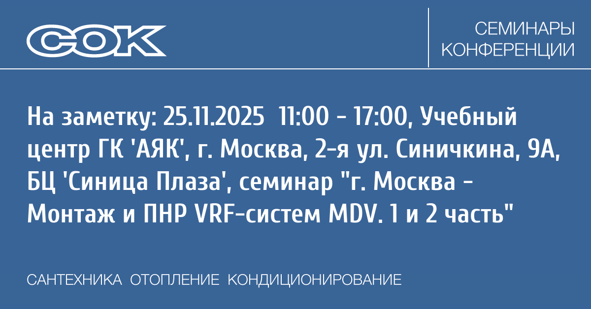 Семинар: г. Москва - Монтаж и ПНР VRF-систем MDV. 1 и 2 часть