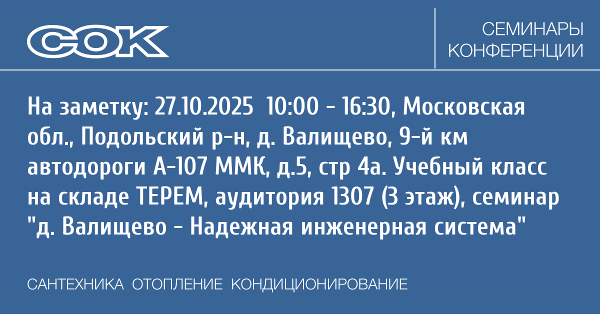 - 28.10.2025 09:30 - 10:30 Webinar Насосы отвода стоков ВИЛО РУС