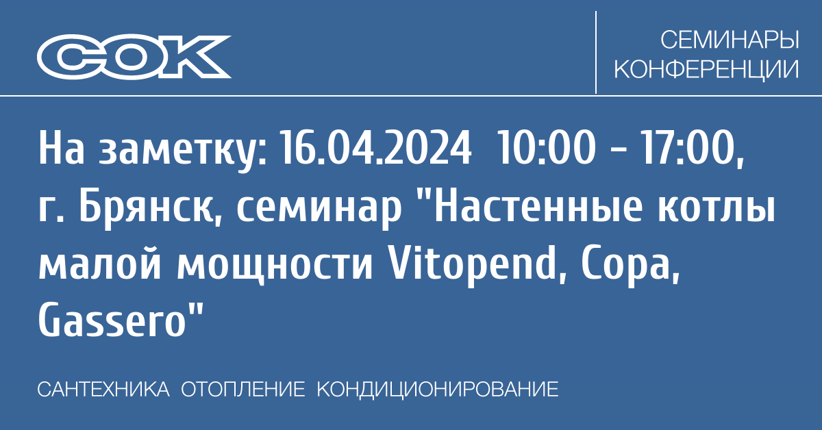 - 15.04.2026 09:30 - 13:30 Семинар ЛУНДА: Завтрак с производителями «BAXI», «Mr.Bond» и «Промыватор» в Брянске