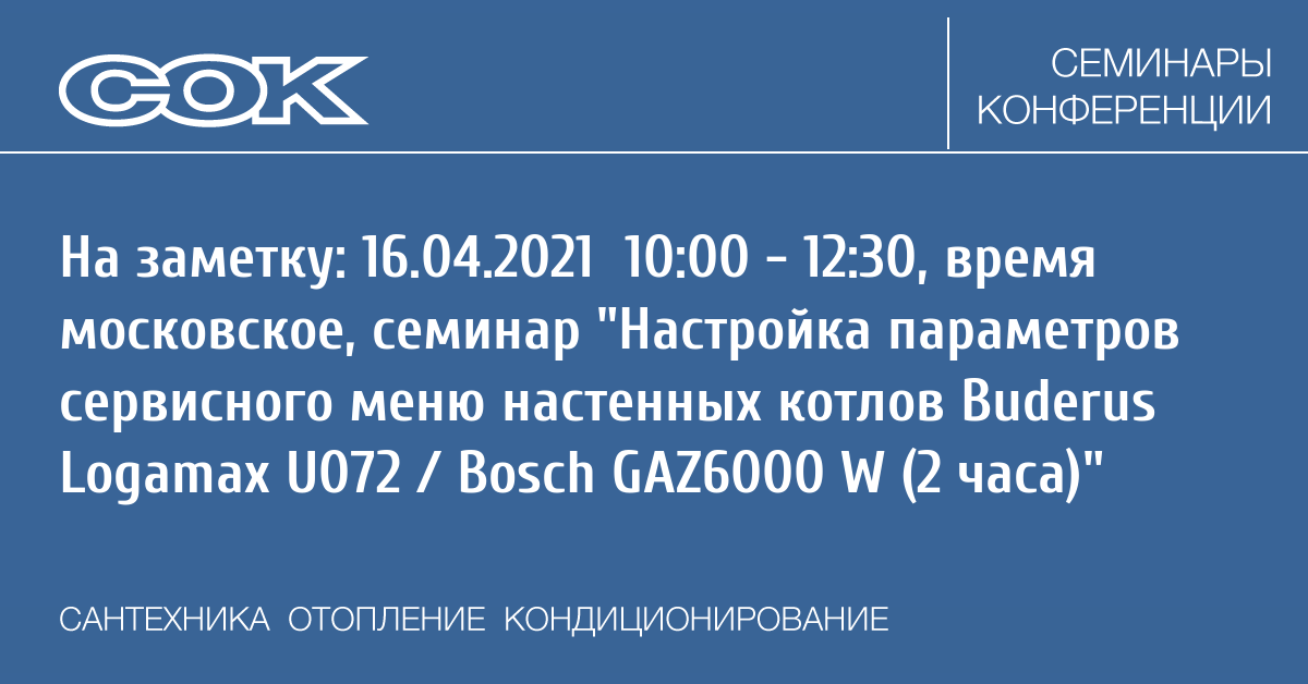Webinar: Настройка параметров сервисного меню настенных котлов Buderus Logamax U072 / Bosch GAZ6000 W (2 часа)