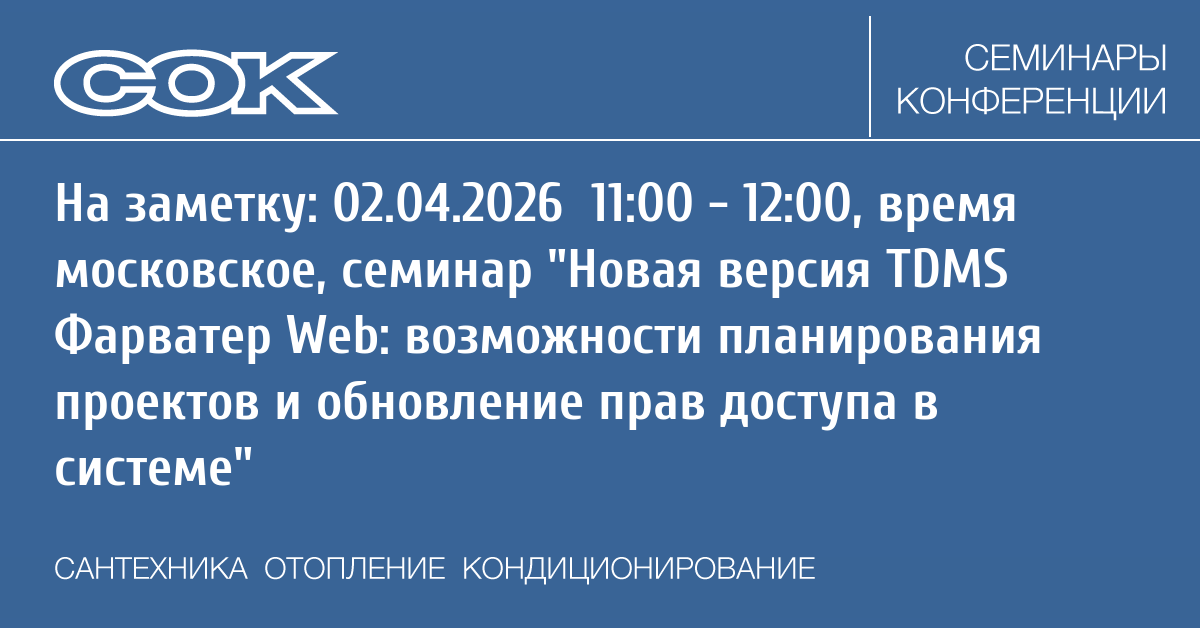 - 25.03.2026 09:30 - 18:00 Семинар г. Владивосток - Инженерно-технические решения в области холодоснабжения и кондиционирования, обзор текущих тенденций в развитии холодильных компонентов