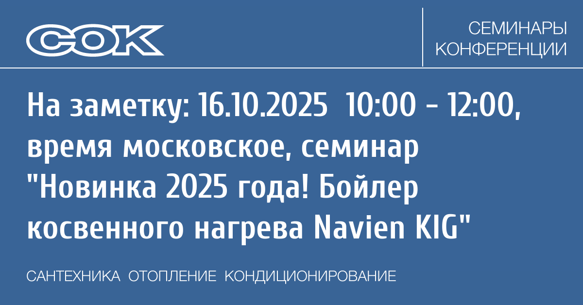 Вебинар: Новинка 2025 года! Бойлер косвенного нагрева Navien KIG