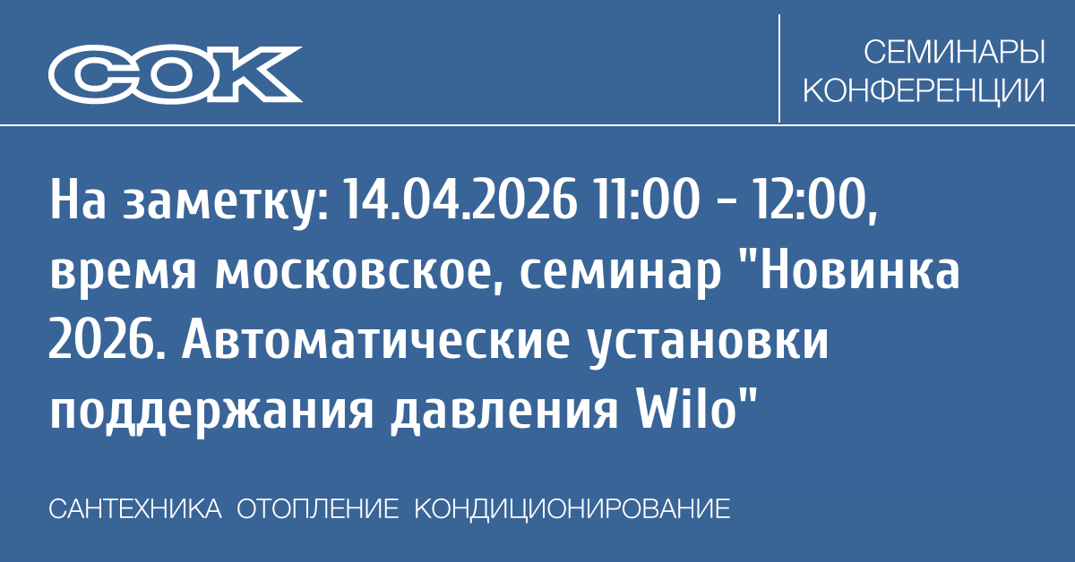 Вебинар: Новинка 2026. Автоматические установки поддержания давления Wilo
