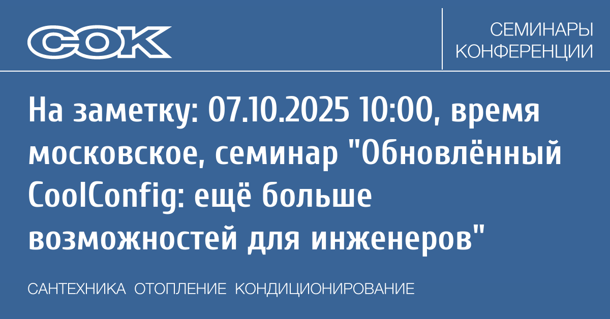 - 07.10.2025 10:00 - 11:00 Webinar Обновлённый CoolConfig: ещё больше возможностей для инженеров