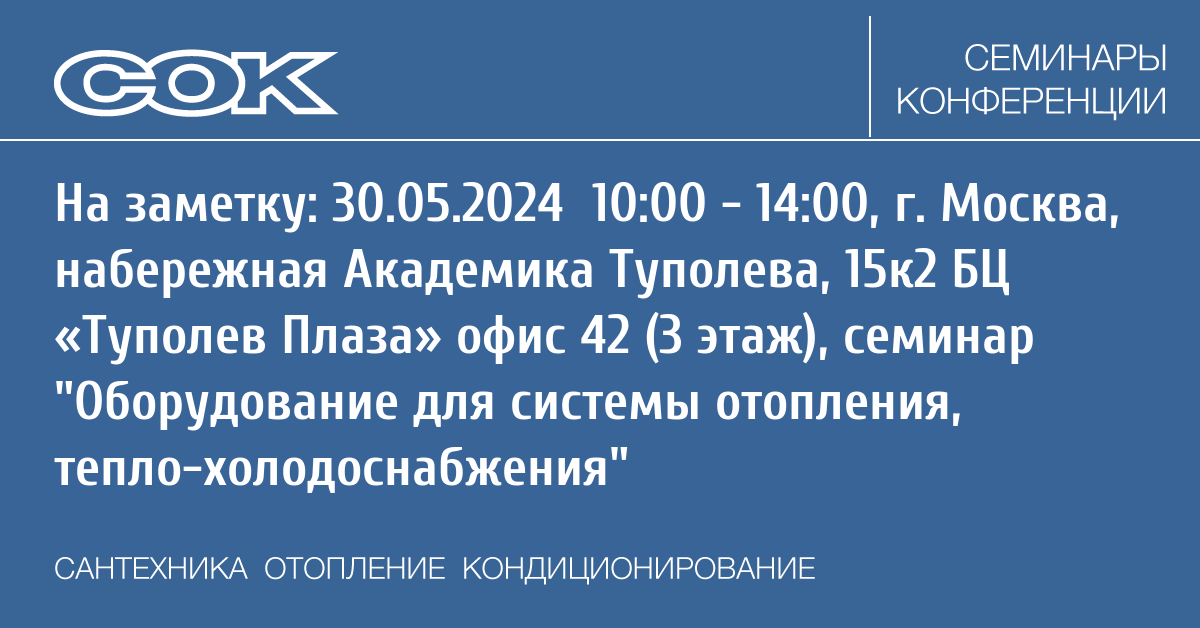 Семинар: Оборудование для системы отопления, тепло-холодоснабжения